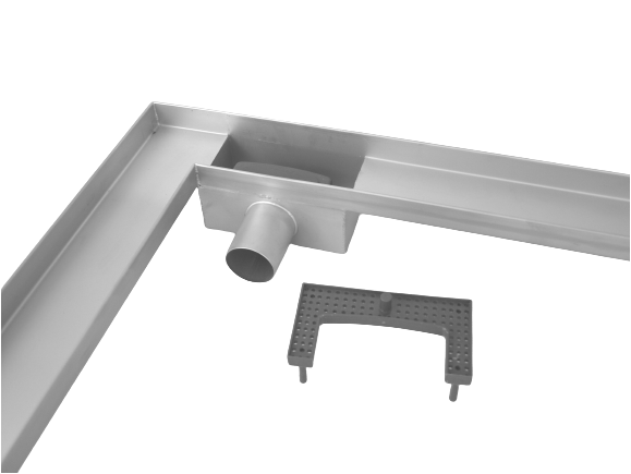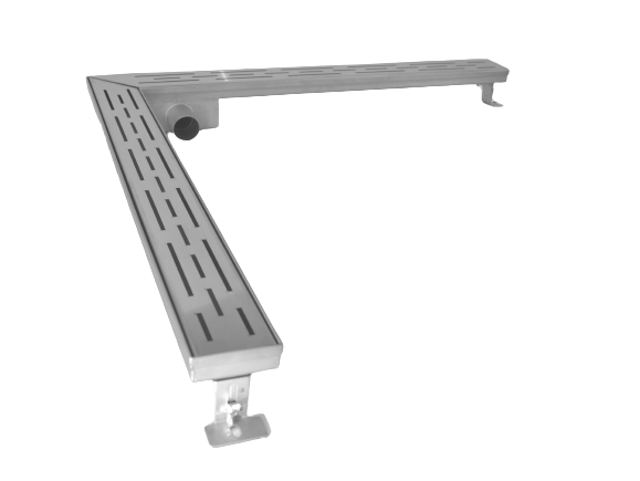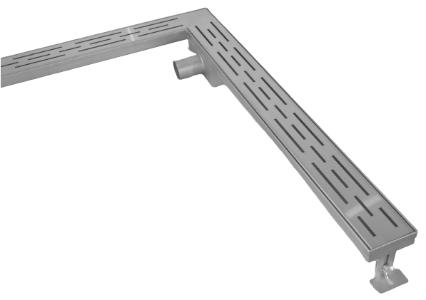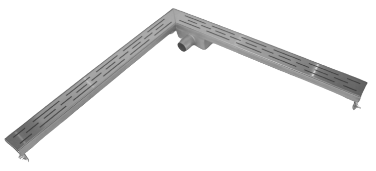 Odpływ liniowy wykonany został z wysokiej jakości stali nierdzewnej i przetestowany ciśnieniowo pod względem szczelności. Z uwagi na swoją konstrukcję – dwuramienne połączenie odwodnień liniowych, pozwala na lepsze zebranie wody w przypadku zastosowania zarówno przy ścianie, jak i w formie granicy prysznica, chroniąc przed przelewaniem się wody na środek łazienki. Zyskując na funkcjonalności uzyskujemy zaskakujący efekt nowoczesnego designu. Ten wysokiej jakości kanał prysznicowy może być uniwersalnie zainstalowany we wszystkich prysznicach wyłożonych kafelkami. Również może znaleźć zastosowanie przy podłogach żywicznych. Mieści się w bardzo ograniczonych warunkach budowlanych z powodu niskiego syfonu. Rynna prysznicowa wykonana jest ze stali grubości blachy 1,2 mm co sprawia, że produkt praktycznie nie ma ograniczeń co do czasu użytkowania. Odwodnienie posiada wbudowany syfon ze stali oraz łatwo wyciągalny plastikowy filtr.